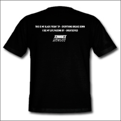 This bundle includes the Black Friday ’29 – Everything Breaks Down Shirt, the Death Or Glory – Your Choice CD and the Black Friday ’29 – Blackout CD.