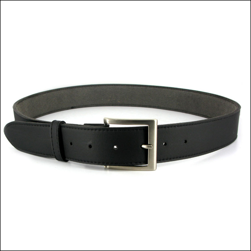 Quality, classic black belt with detachable buckle. Beautifully made with a new, smoother version of our durable and flexible, Italian micro-fibre material. Nicely thick without being overly bulky. Comes with silver metal colour half-square nickel buckle. With stitched edges. Two press studs easily detach so you can add your own buckle. Other buckles shown are for illustration purposes only. Width approx 38mm. Thickness approx 4mm.