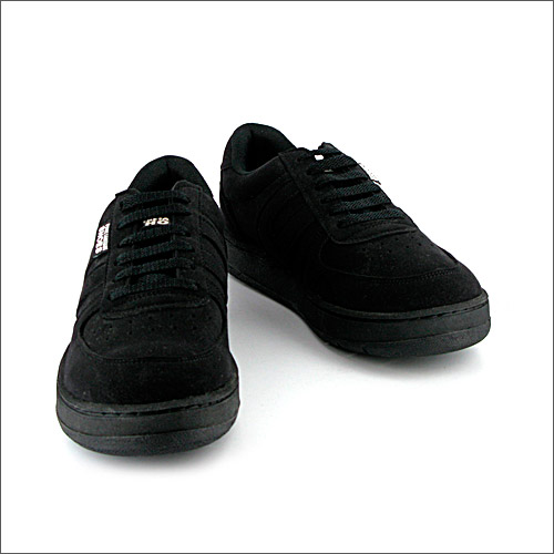 Lovely soft fake suede. Breathable and pliable like real suede. Not very water resistant though. With the usual padded collar, tongues and insoles for comfort. grippy rubber fanatic soles stitched on for durability.